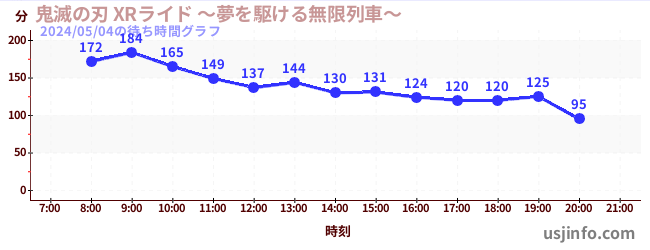 • 鬼滅の刃 XRライド$B$N(B2024年05月04日の待ち時間