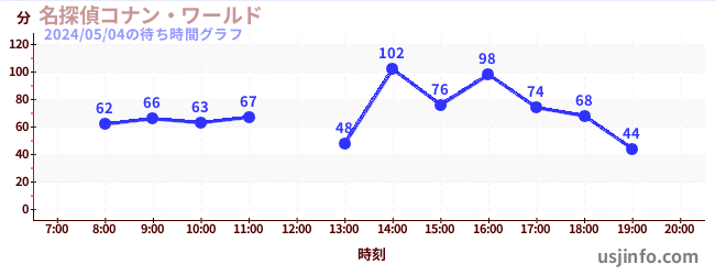 • 名探偵コナン・ワールド$B$N(B2024年05月04日の待ち時間