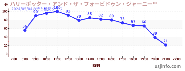 • ハリーポッター・アンド・ザ・フォービドゥン・ジャーニー™$B$N(B2024年05月04日の待ち時間
