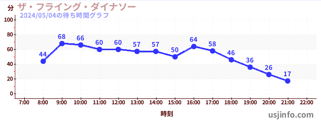 • ザ・フライング・ダイナソー$B$N(B2024年05月04日の待ち時間