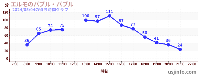 • エルモのバブル・バブル$B$N(B2024年05月04日の待ち時間