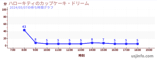 • ハローキティのカップケーキ・ドリーム$B$N(B2024年05月07日の待ち時間
