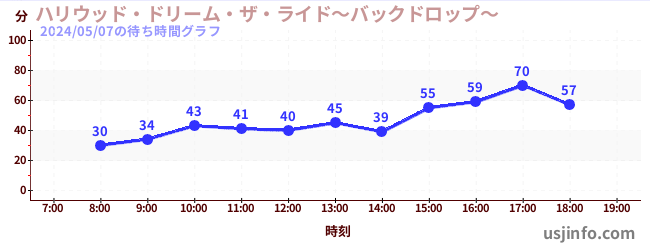 • ハリウッド・ドリーム・ザ・ライド〜バックドロップ〜$B$N(B2024年05月07日の待ち時間