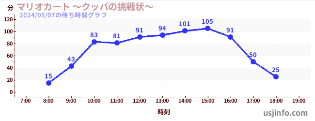 • マリオカート ~クッパの挑戦状~$B$N(B2024年05月07日の待ち時間