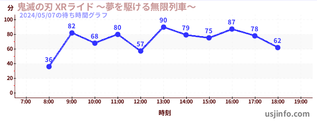 • 鬼滅の刃 XRライド$B$N(B2024年05月07日の待ち時間