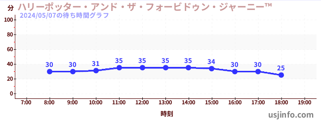 • ハリーポッター・アンド・ザ・フォービドゥン・ジャーニー™$B$N(B2024年05月07日の待ち時間