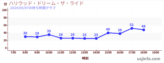 • ハリウッド・ドリーム・ザ・ライド$B$N(B2024年05月07日の待ち時間