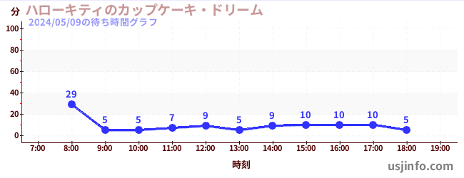 • ハローキティのカップケーキ・ドリーム$B$N(B2024年05月09日の待ち時間