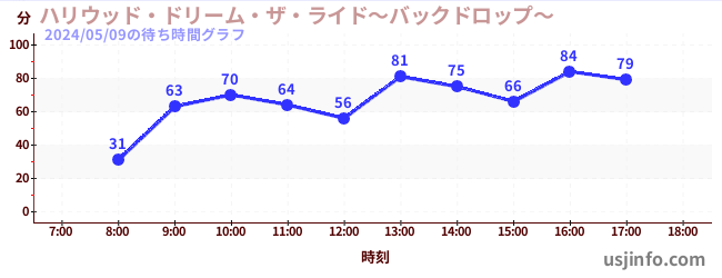 • ハリウッド・ドリーム・ザ・ライド〜バックドロップ〜$B$N(B2024年05月09日の待ち時間