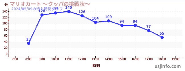 • マリオカート ~クッパの挑戦状~$B$N(B2024年05月09日の待ち時間