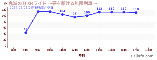 • 鬼滅の刃 XRライド$B$N(B2024年05月09日の待ち時間