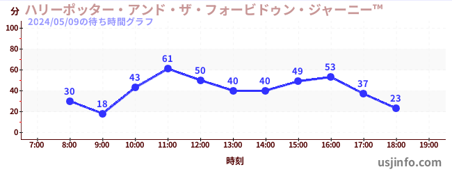 • ハリーポッター・アンド・ザ・フォービドゥン・ジャーニー™$B$N(B2024年05月09日の待ち時間