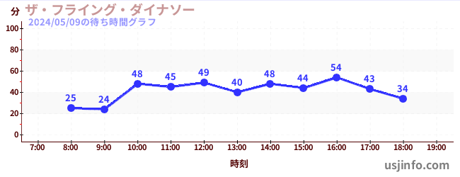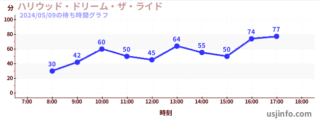 • ハリウッド・ドリーム・ザ・ライド$B$N(B2024年05月09日の待ち時間