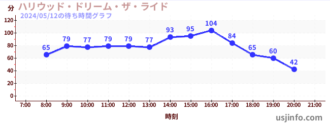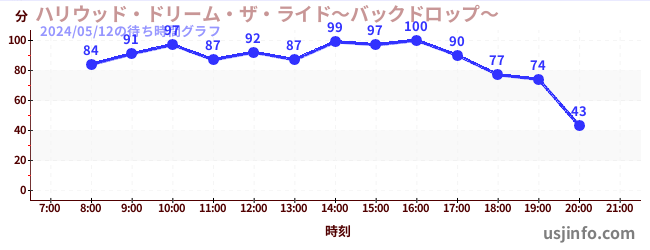 • ハリウッド・ドリーム・ザ・ライド〜バックドロップ〜$B$N(B2024年05月12日の待ち時間