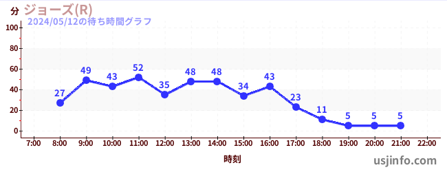 • ジョーズ(R)$B$N(B2024年05月12日の待ち時間