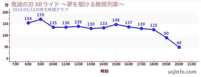 • 鬼滅の刃 XRライド$B$N(B2024年05月12日の待ち時間