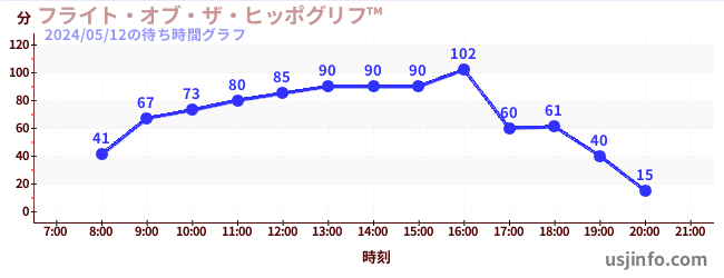 • フライト・オブ・ザ・ヒッポグリフ™$B$N(B2024年05月12日の待ち時間