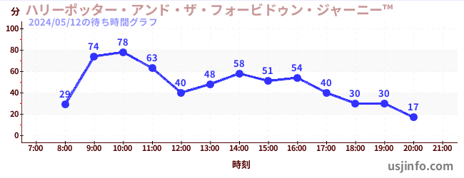 • ハリーポッター・アンド・ザ・フォービドゥン・ジャーニー™$B$N(B2024年05月12日の待ち時間
