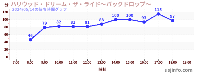 • ハリウッド・ドリーム・ザ・ライド〜バックドロップ〜$B$N(B2024年05月14日の待ち時間