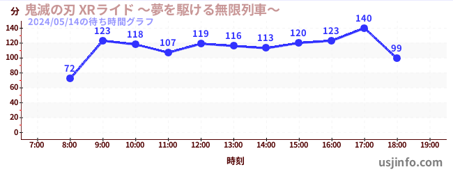 • 鬼滅の刃 XRライド$B$N(B2024年05月14日の待ち時間