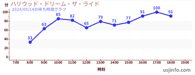 • ハリウッド・ドリーム・ザ・ライド$B$N(B2024年05月14日の待ち時間