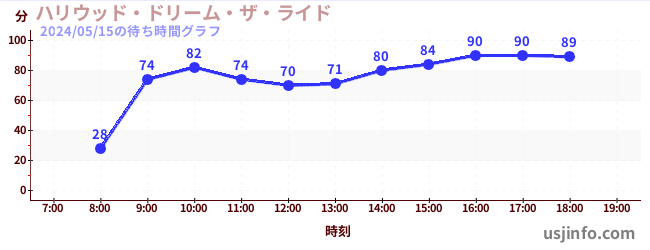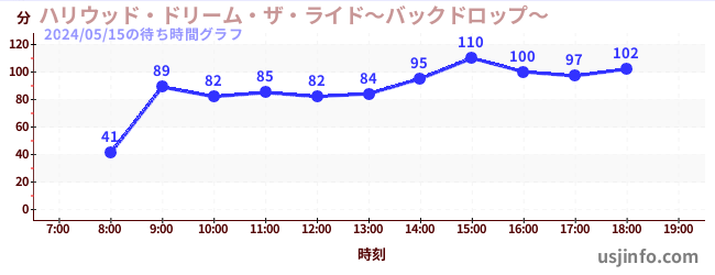 • ハリウッド・ドリーム・ザ・ライド〜バックドロップ〜$B$N(B2024年05月15日の待ち時間