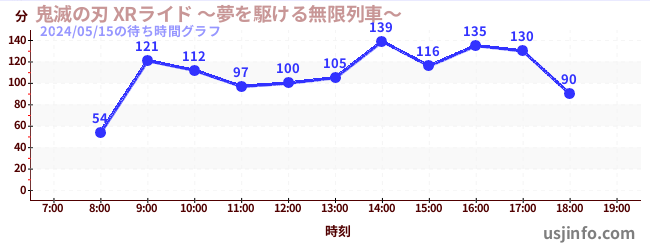 • 鬼滅の刃 XRライド$B$N(B2024年05月15日の待ち時間