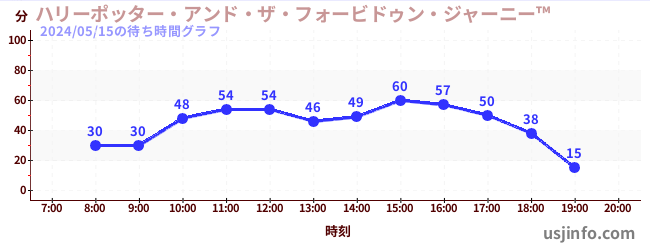• ハリーポッター・アンド・ザ・フォービドゥン・ジャーニー™$B$N(B2024年05月15日の待ち時間
