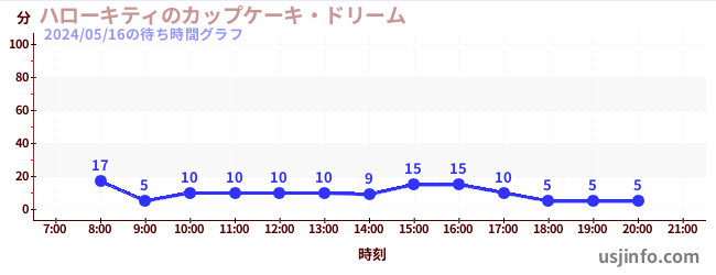 • ハローキティのカップケーキ・ドリーム$B$N(B2024年05月16日の待ち時間
