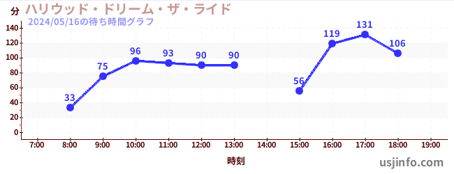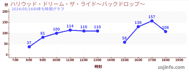 • ハリウッド・ドリーム・ザ・ライド〜バックドロップ〜$B$N(B2024年05月16日の待ち時間