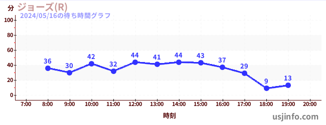 • ジョーズ(R)$B$N(B2024年05月16日の待ち時間