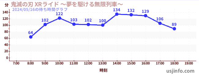 • 鬼滅の刃 XRライド$B$N(B2024年05月16日の待ち時間