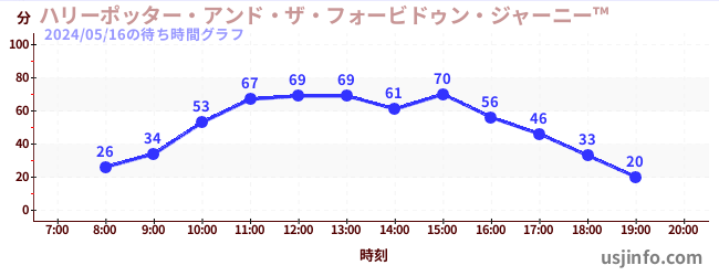 • ハリーポッター・アンド・ザ・フォービドゥン・ジャーニー™$B$N(B2024年05月16日の待ち時間