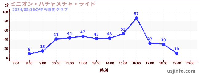 • ミニオン・ハチャメチャ・ライド$B$N(B2024年05月16日の待ち時間