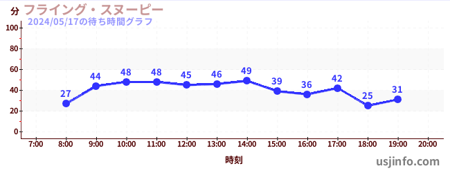 • フライング・スヌーピー$B$N(B2024年05月17日の待ち時間
