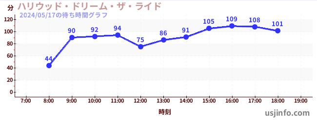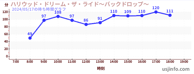 • ハリウッド・ドリーム・ザ・ライド〜バックドロップ〜$B$N(B2024年05月17日の待ち時間