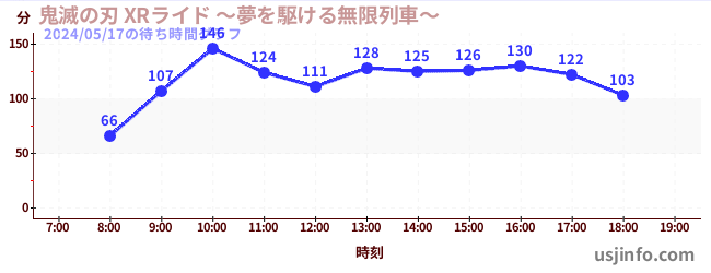 • 鬼滅の刃 XRライド$B$N(B2024年05月17日の待ち時間