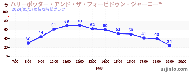 • ハリーポッター・アンド・ザ・フォービドゥン・ジャーニー™$B$N(B2024年05月17日の待ち時間