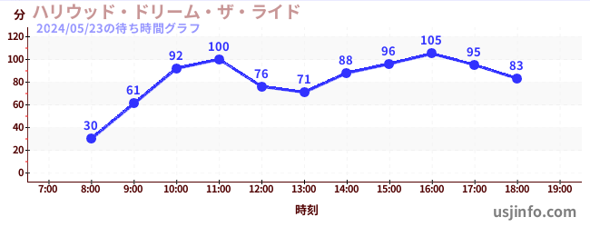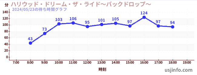 • ハリウッド・ドリーム・ザ・ライド〜バックドロップ〜$B$N(B2024年05月23日の待ち時間