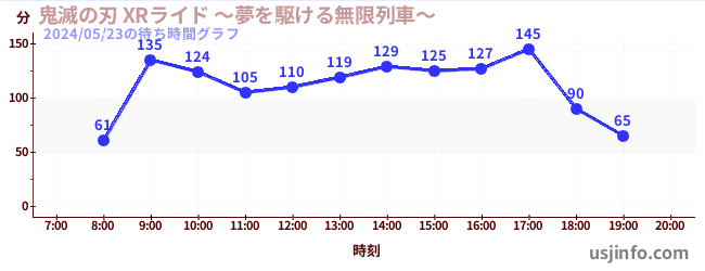• 鬼滅の刃 XRライド$B$N(B2024年05月23日の待ち時間