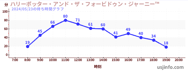 • ハリーポッター・アンド・ザ・フォービドゥン・ジャーニー™$B$N(B2024年05月23日の待ち時間