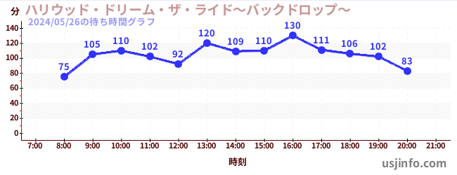 • ハリウッド・ドリーム・ザ・ライド〜バックドロップ〜$B$N(B2024年05月26日の待ち時間