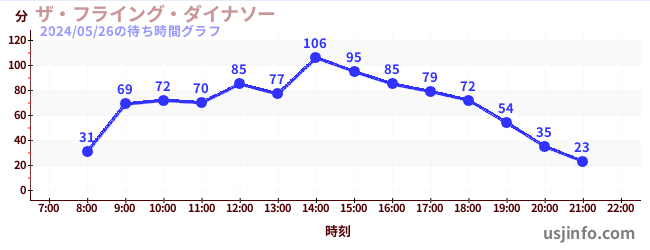 • ザ・フライング・ダイナソー$B$N(B2024年05月26日の待ち時間