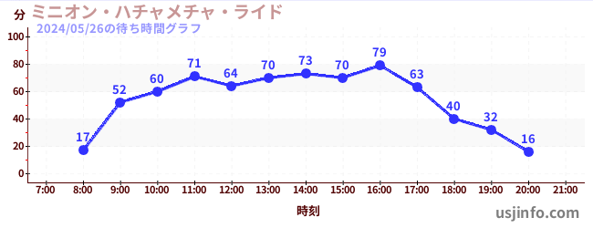 • ミニオン・ハチャメチャ・ライド$B$N(B2024年05月26日の待ち時間
