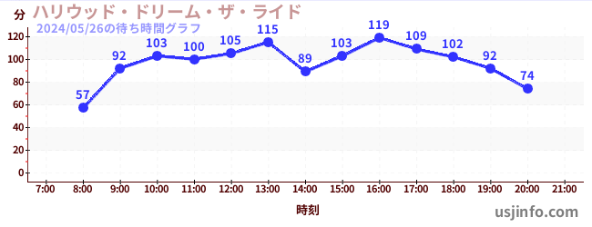 • ハリウッド・ドリーム・ザ・ライド$B$N(B2024年05月26日の待ち時間