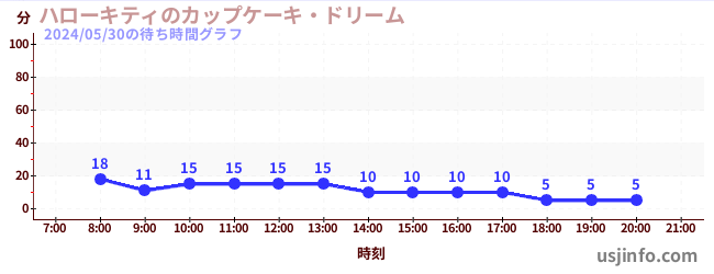 • ハローキティのカップケーキ・ドリーム$B$N(B2024年05月30日の待ち時間