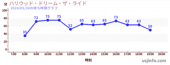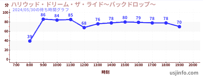 • ハリウッド・ドリーム・ザ・ライド〜バックドロップ〜$B$N(B2024年05月30日の待ち時間