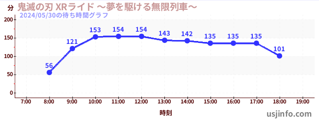 • 鬼滅の刃 XRライド$B$N(B2024年05月30日の待ち時間