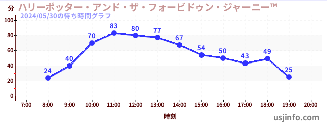 • ハリーポッター・アンド・ザ・フォービドゥン・ジャーニー™$B$N(B2024年05月30日の待ち時間