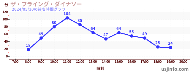 • ザ・フライング・ダイナソー$B$N(B2024年05月30日の待ち時間